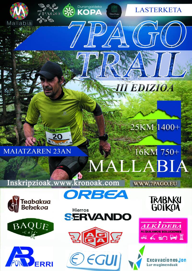 La carrera de montaña de Zazpi Pago. Será organizado por la asociación del mismo nombre, por tercera vez, para el 23 de mayo. Habrá dos recorridos a elegir: 25 kilómetros y 16 kilómetros cada uno, con desniveles positivos de 1.400 y 750 metros, respectivamente. Las inscripciones estarán pronto en marcha, en la plataforma Kronoak.